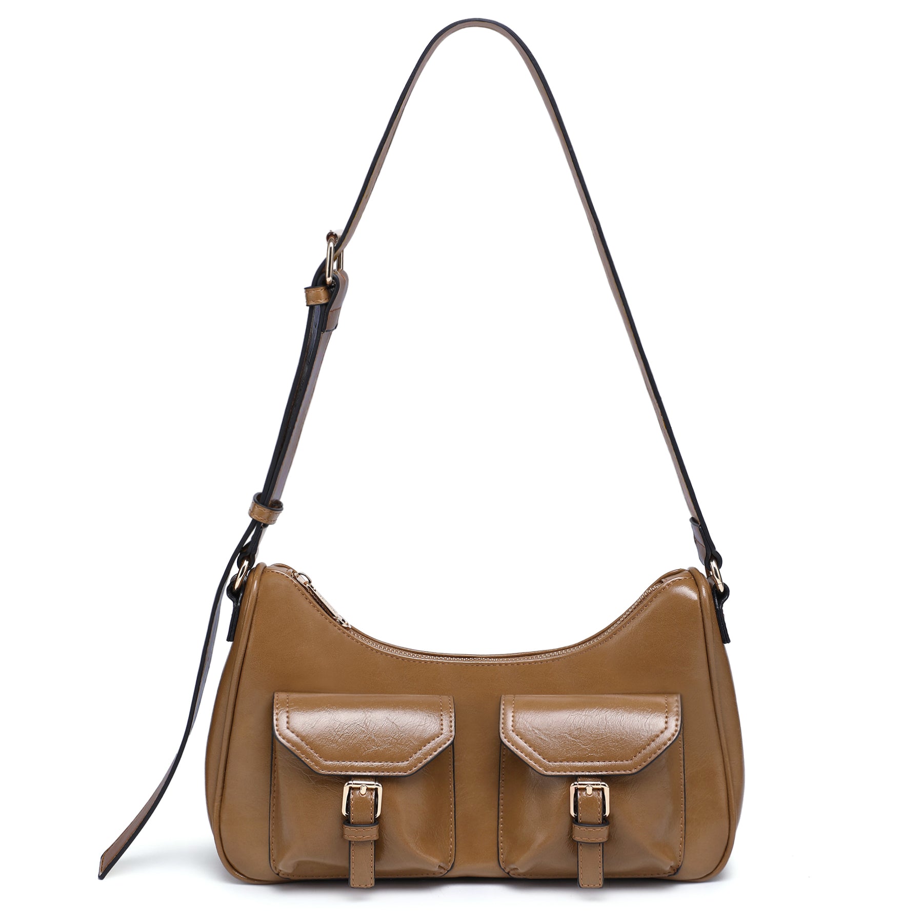 Dasein Retro Shoulder Purse for Women Faux Oiled Leather Hobo Bag Y2K Handbag with Buckle Pockets