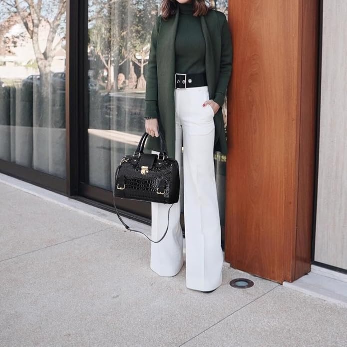Croco: The satchel purse is made of high-quality vegan leather with crocodile textures. It can be used as a work tote, satchel purse, top handle bag, and shoulder handbag.