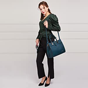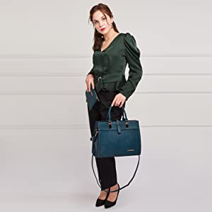 Women Flap-over Belt Top Handle Tote Satchel Purse Work Bag Matching Wristlet bag l Dasein