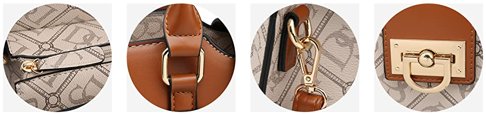 A new trend in fashion looks- Dasein Monogram/Signature Logo Faux Leather Satchel, top zipper closure with additional flip belted snap closure, and with Matching Wristlet The satchel's leather monogram print give it a classy look that is professional and fashionable. Made from synthetic leather with a double handle and a removable/ adjustable shoulder strap, now with extra back zipped compartment. This will make the perfect work accessory for every working woman on-the-go. |