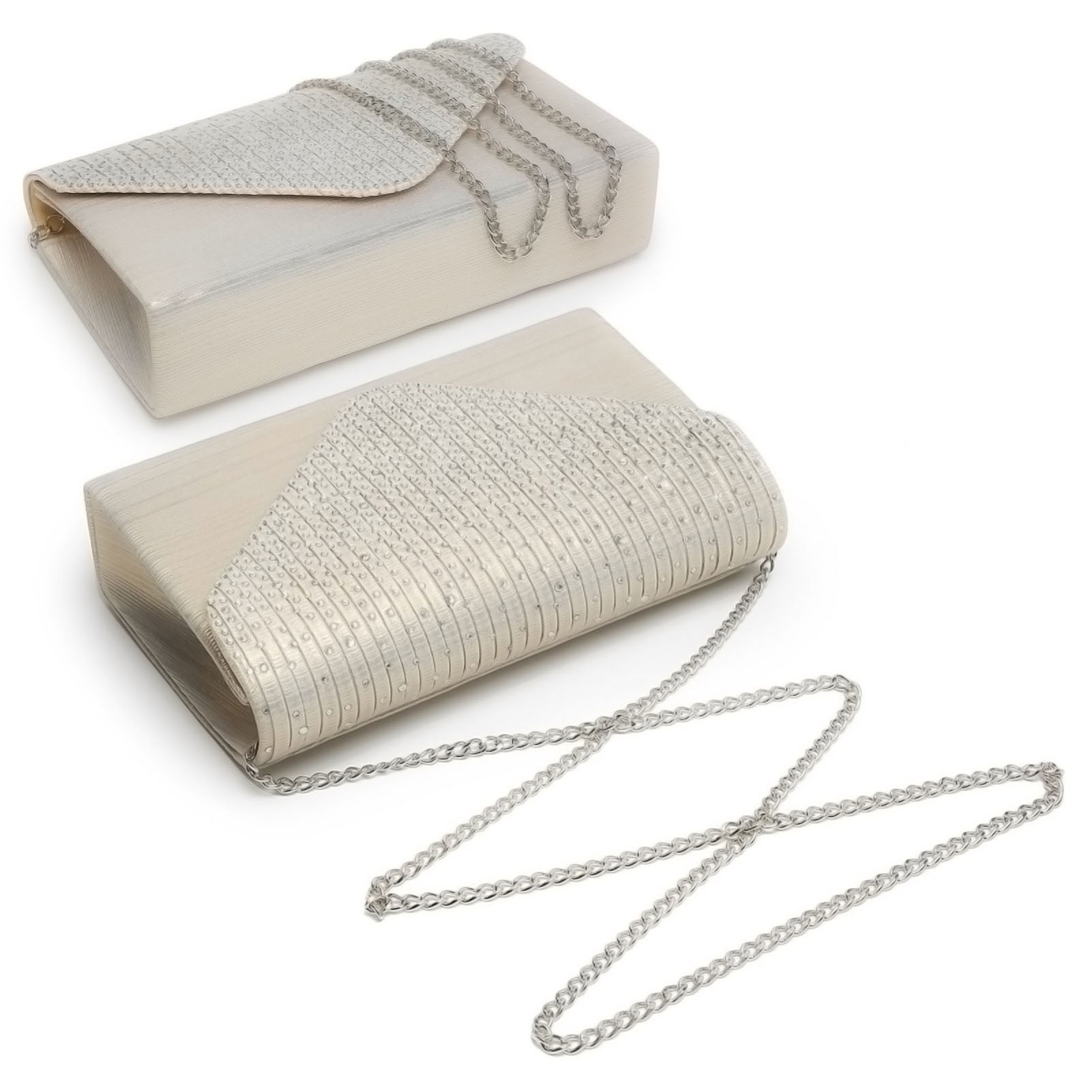 - A detachable silver chain strap makes it easier for you to free your hands for a cup of champagne.