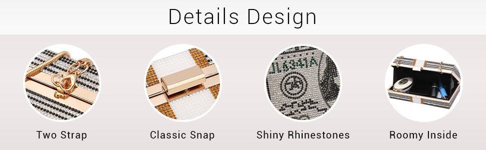 Stack of Cash Dollars Clutch Party Purse Crystal Evening Bag Cocktail for Women