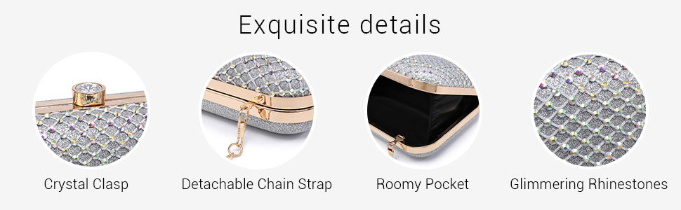 Womens Sparkling Rhinestone Clutch Evening Purse for Prom Party Wedding Dasein
